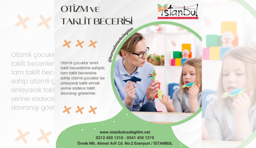 Kumsal İstanbul Özel Eğitim Kurumları otizmli çocuklarda taklit becerilerinin çocukların anlayarak gerçekleştirmesini sağlar ve gelişimini destekler.